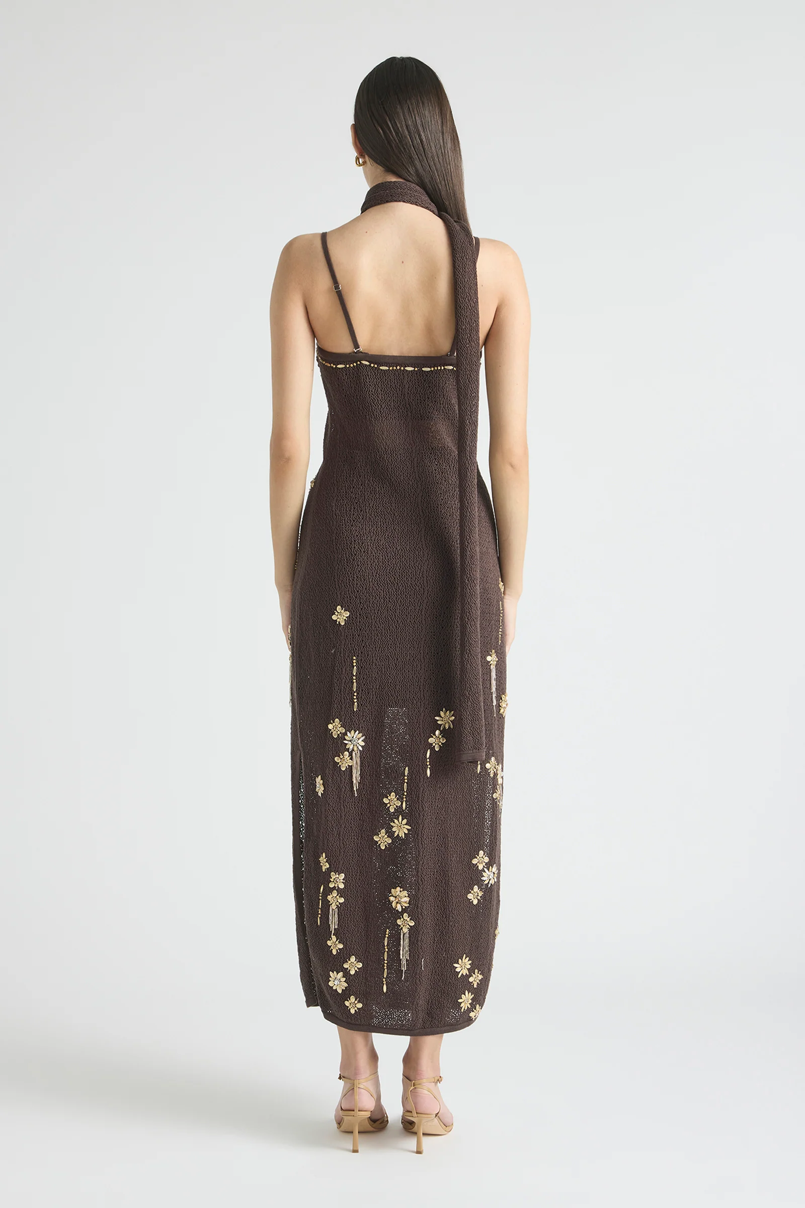 The In Bloom Strapless Gown is an elegant statement, finished with intricate gold embroidery that feels like wearable artwork. With a clean strapless neckline and a fluid, elongated silhouette, it’s designed to fall beautifully on the body with a quiet, romantic drama.